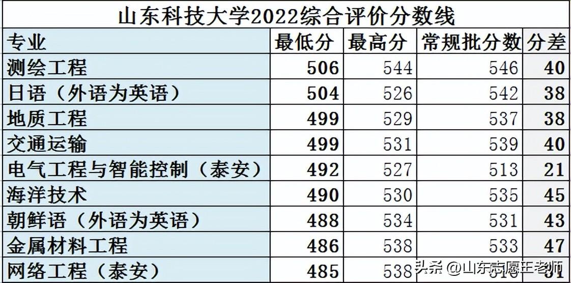 山东科技大学提前批有综合评价招生,由于这个所学校专业特色跟采矿有关,所以专业热度不高,在综合评价招生的专业也大多数不是热门专业,所以分数比较低,大概是山东省所以综评院校中录取分数线最低的一个了,如果你是奔着山科这个学校去的,还能接受综评的这些专业,那么也可以试一下综合评价招生。具体录取分数看下图:
