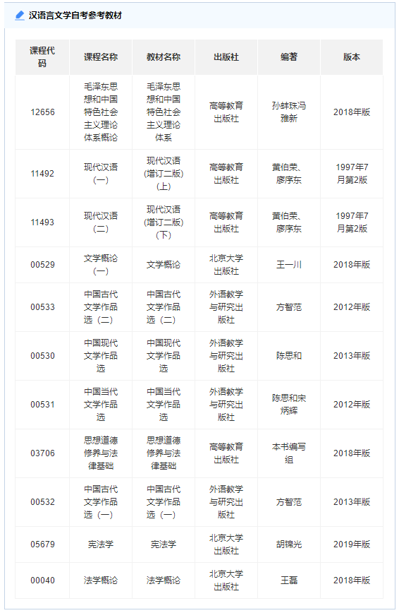 以下是汉语言文学专业专科自考常见的考试科目,根据汉语言文学专业的招生学校不同,所需要的考试科目有所不同,所以考生在查询考试科目时要注意对准自己所报读的学校哦。