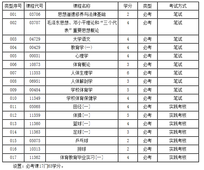 体育教育自考课程的考试科目,不同的院校考试的科目不一样,以主考院校为准,仅供参考。