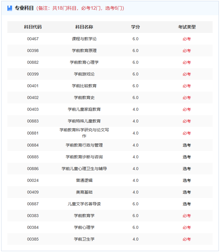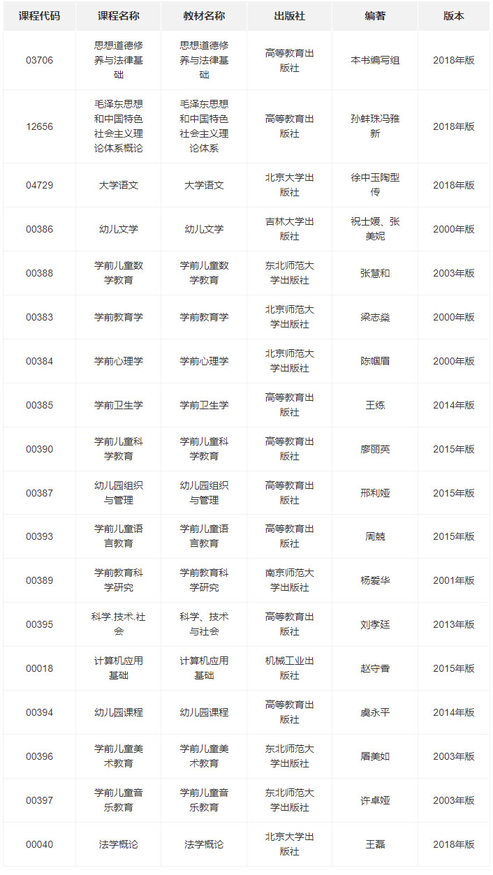 3.学前教育自考科目(本科)