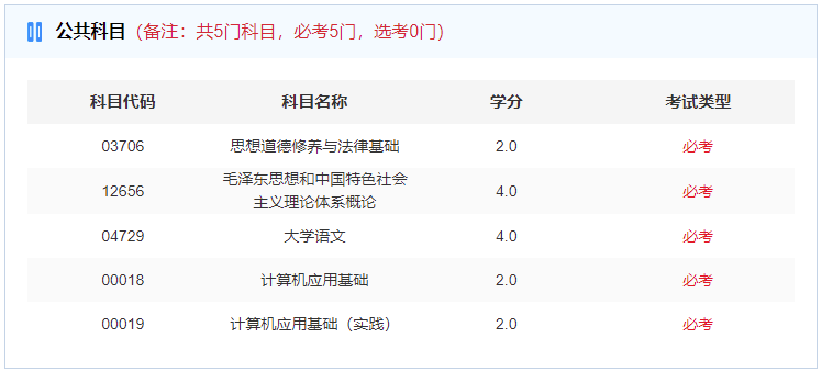 学前教育成人高考的入学考试每年仅有一次报名机会,根据不同的报考层次,其考试科目有所出入,具体如下: