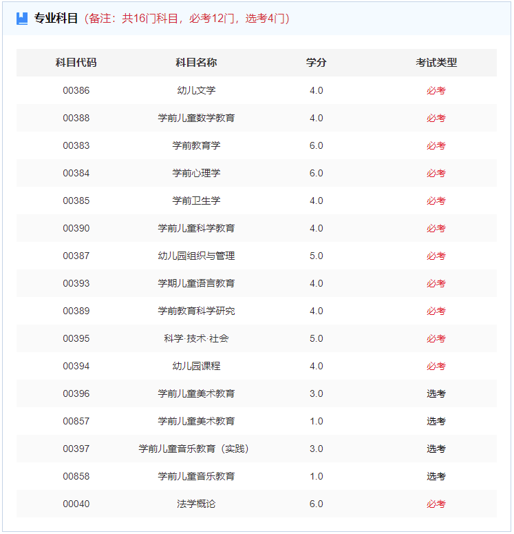 2.学前教育自考科目(专科)